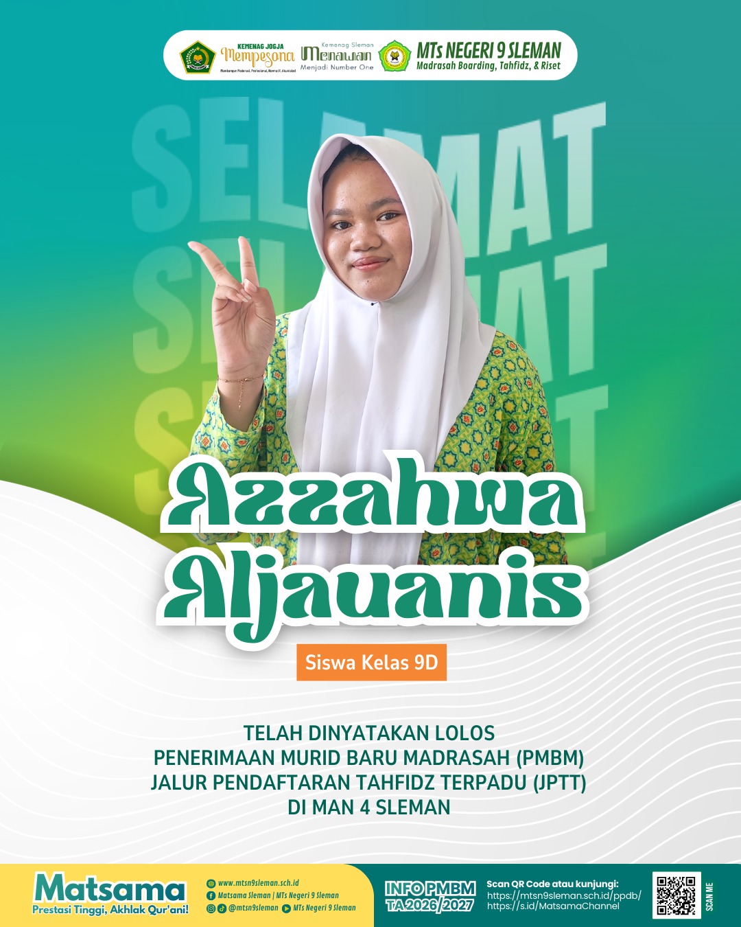 Update Matsama (MTsN 9 Sleman) – MTsN 9 Sleman kembali menorehkan prestasi membanggakan. Lima siswa kelas IX berhasil diterima di Madrasah Aliyah Negeri melalui jalur…