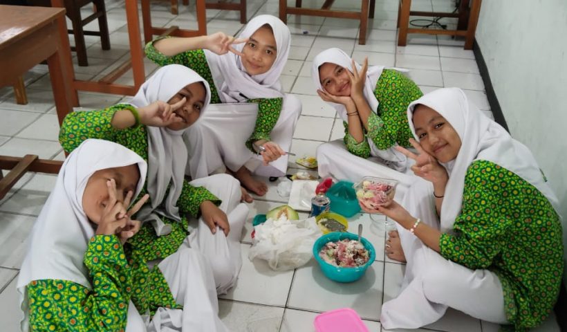 Antusiasme Siswa Kelas VII Membuat Kreasi Salad Buah dalam P5PPRA