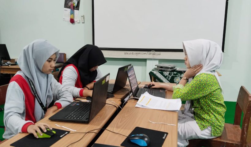 Tim Editor Proyek Antologi Fabel MTsN 9 Sleman Mengedit Naskah Fabel Bersama