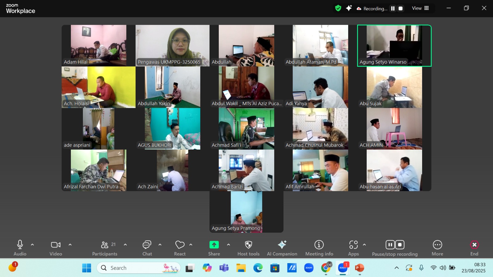 Kemenag Sleman News (MTsN 9 Sleman)- Empat guru MTsN 9 Sleman, yaitu Abu Hasan Al As Ari, Dwi Ari Wahyuni, Farerean Yulistia Marga, dan Tety Nur Fithriani mengikuti Ujian Pengetahuan (UP) Pendidikan Profesi Guru (PPG) pada Sabtu (23/8/2025). Ujian ini dilaksanakan secara daring dari rumah masing-masing melalui aplikasi exambro dan platform zoom meeting sebagai sarana pengawasan yang ketat.