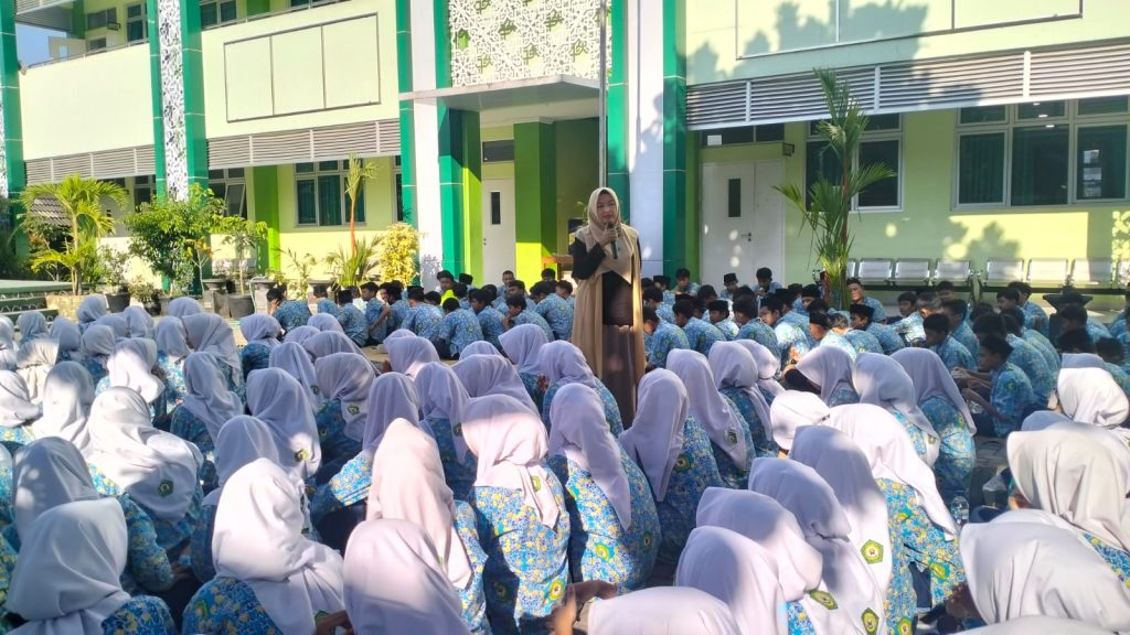 Sleman (MTsN 9 Sleman) – MTsN 9 Sleman kembali menggelar kegiatan Jumat Ceria pada Jumat pagi (17/10/2025) bertempat di halaman madrasah. Kegiatan yang dimulai pukul 07.00 hingga 07.45 WIB ini berlangsung meriah dan penuh kebersamaan. Seluruh siswa dan guru pegawai mengikuti kegiatan ini. Kegiatan Jumat Ceria ini dipandu oleh Fiina Fauzia Akmala dari kelas VIIIC dan Naazira Afiqah Qatrunnada dari kelas VIIID dengan penuh semangat dan percaya diri.