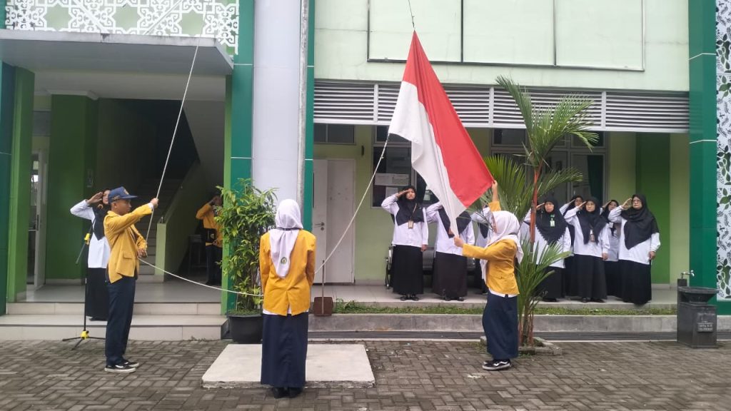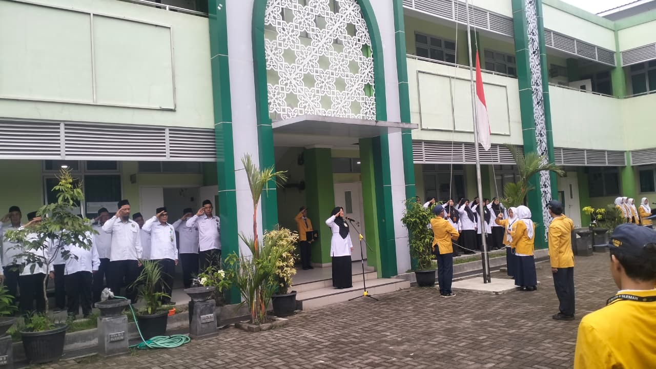 Update Matsama (MTsN 9 Sleman) – MTsN 9 Sleman menggelar upacara bendera perdana setelah seluruh siswa menikmati masa libur panjang semester ganjil tahun ajaran 2025/2026. Seluruh siswa, guru, dan pegawai berkumpul di halaman madrasah pada Senin pagi (05/01/2026) pukul 07.00 WIB untuk mengikuti upacara bendera. Adapun siswa yang menjadi petugas dalam upacara kali ini adalah siswa-siswi kelas VIII anggota Dewan Penggalang (DP).