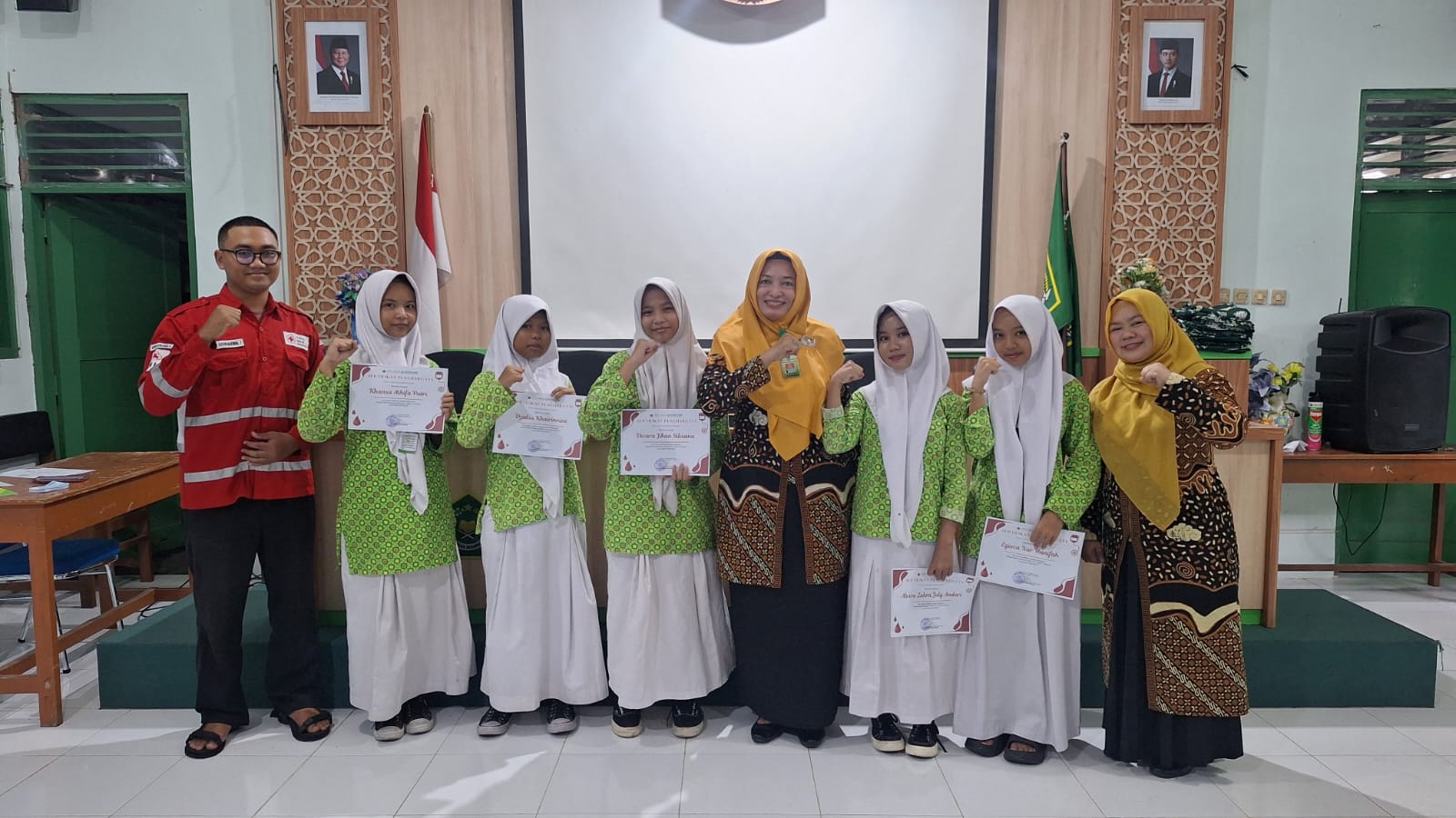 Pengurus PMR yang dilepas pada periode ini dipimpin oleh Khansa Athifa Putri, yang selama satu tahun kepengurusan telah menunjukkan kepemimpinan yang baik, disiplin, dan penuh tanggung jawab. Dalam sambutannya, Siti Juwariyah menyampaikan apresiasi mendalam kepada seluruh pengurus yang telah berperan aktif mendukung berbagai kegiatan kesehatan dan sosial di madrasah.