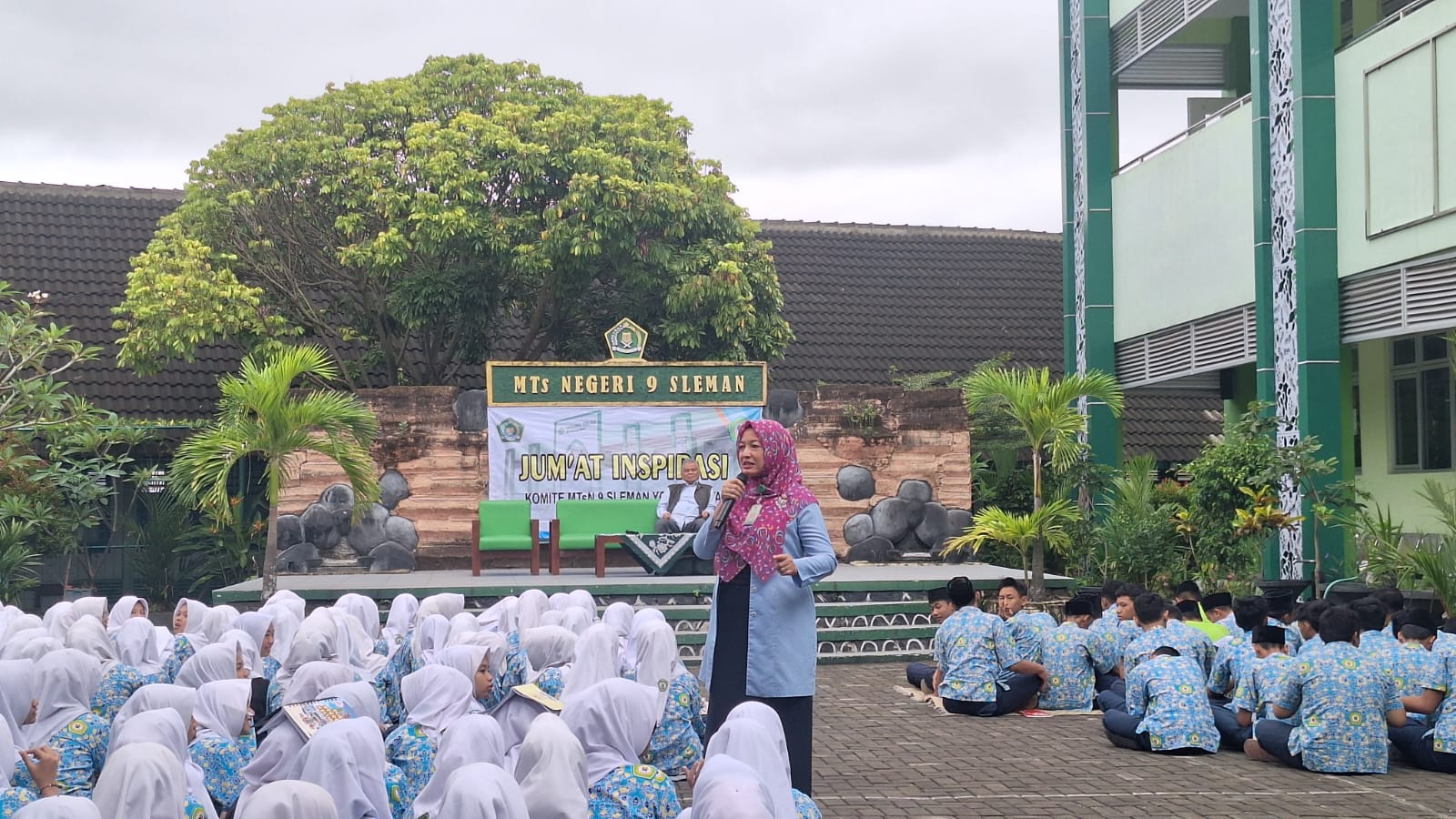 Program Jum’at Inspirasi MTsN 9 Sleman merupakan salah satu inovasi yang bekerja sama dengan komite madrasah. Melalui program ini, madrasah berkomitmen menghadirkan tokoh-tokoh inspiratif dari berbagai bidang untuk memotivasi siswa agar semakin berprestasi, mandiri, dan berkarakter.(CR)
