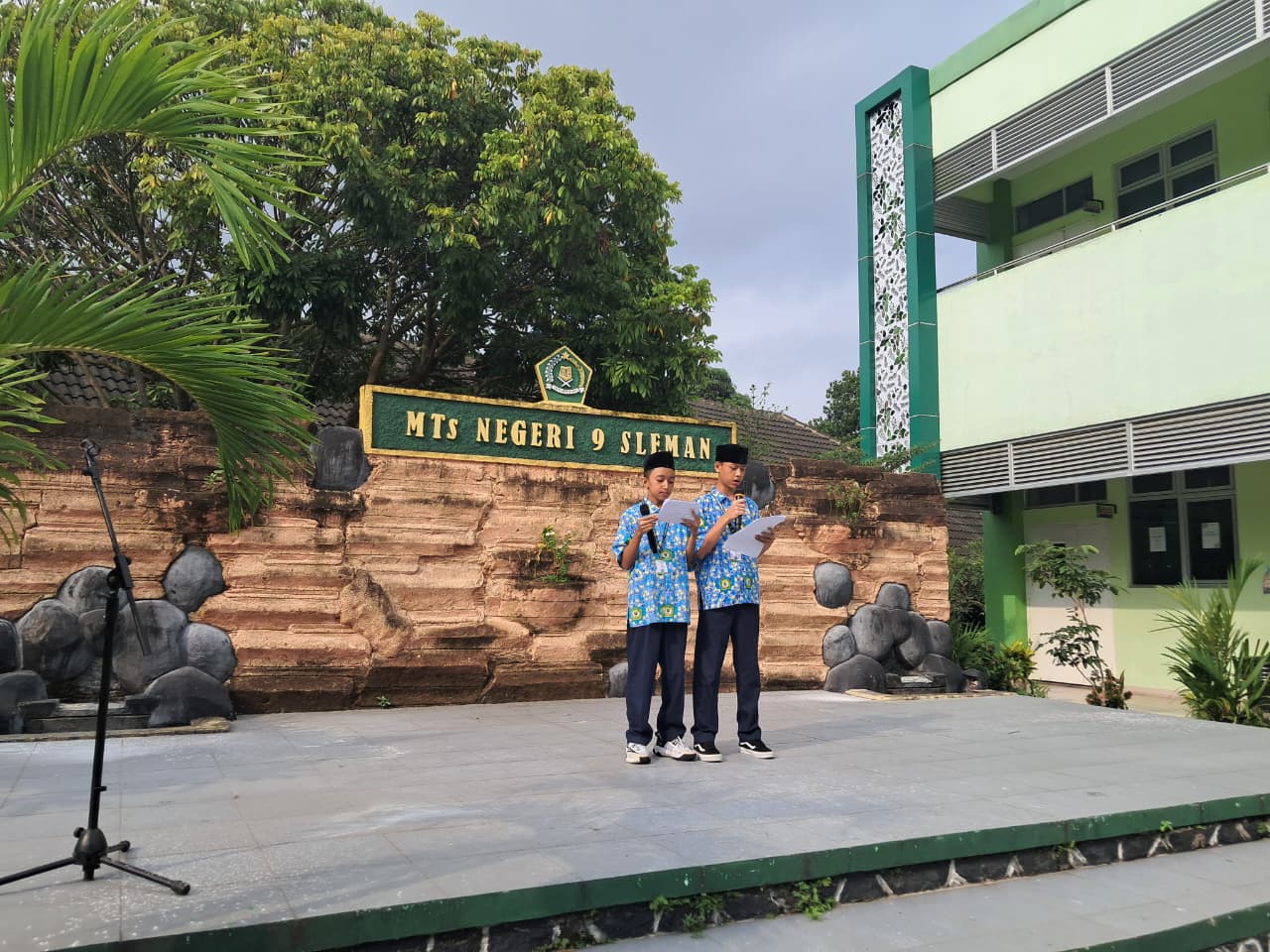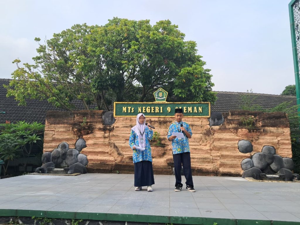Update Matsama (MTsN 9 Sleman) – Dalam rangka mempersiapkan pengurus OSIS yang handal, MTsN 9 Sleman menggelar orasi bagi para kandidat Ketua OSIS dan Wakil Ketua OSIS periode 2025/ 2026. Kegiatan tersebut digelar di panggung utama MTsN 9 Sleman pada Jumat (03/10/2025). Sebelum Orasi dimulai, ada kejutan menarik dimana dua siswa anggota OSIS periode sebelumnya yakni Darwin Pedro siswa kelas VIII C dan Faiz Mufid siswa kelas IXB memecahkan suasana dengan pertunjukkan gerak bagaikan Elsa dalam kartun Frozen. Mereka tampil memukau didukung dengan dandanan yang menarik.