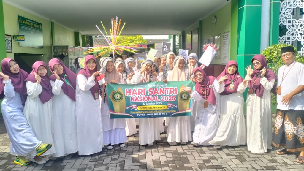 Update Matsama (MTsN 9 Sleman) – Pada hari Rabu pagi (22/10/2025) MTsN 9 Sleman gelar kirab dalam rangka peringatan Hari Santri Nasional 2025. Kirab dilaksanakan setelah kegiatan apel, yakni dimulai pada pukul 08.00 WIB sampai dengan pukul 08.45 WIB. Adapun peserta kirab kali ini adalah seluruh siswa kelas VII dan VIII. Siswa kelas IX tidak mengikuti kegiatan kirab karena sedang melaksanakan PPTKA-TKAD.