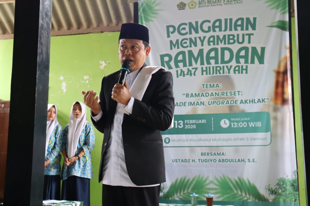 Elva Lutfiyati selaku Waka bidang Humas menyampaikan bahwa “Kegiatan ini menjadi bagian dari pembinaan karakter religius bagi seluruh warga madrasah. Melalui pengajian ini diharapkan seluruh siswa, guru, dan pegawai MTsN 9 Sleman dapat menyambut Ramadan dengan hati yang bersih, penuh kesiapan, serta meningkatkan keimanan dan ketakwaan kepada Allah SWT.” Kegiatan ditutup dengan doa bersama agar seluruh rangkaian ibadah di bulan Ramadan dapat berjalan dengan lancar dan penuh keberkahan. (YL)