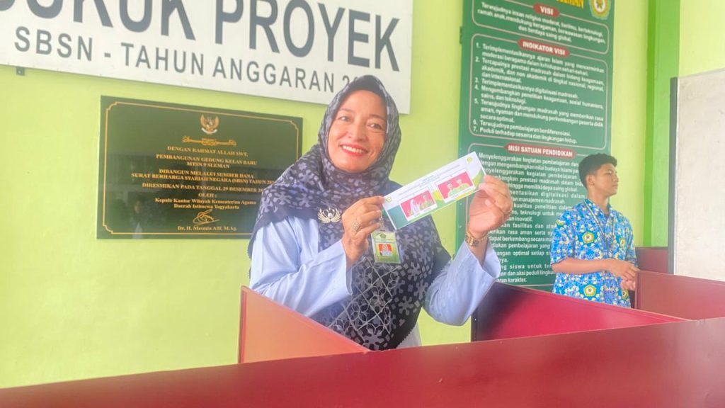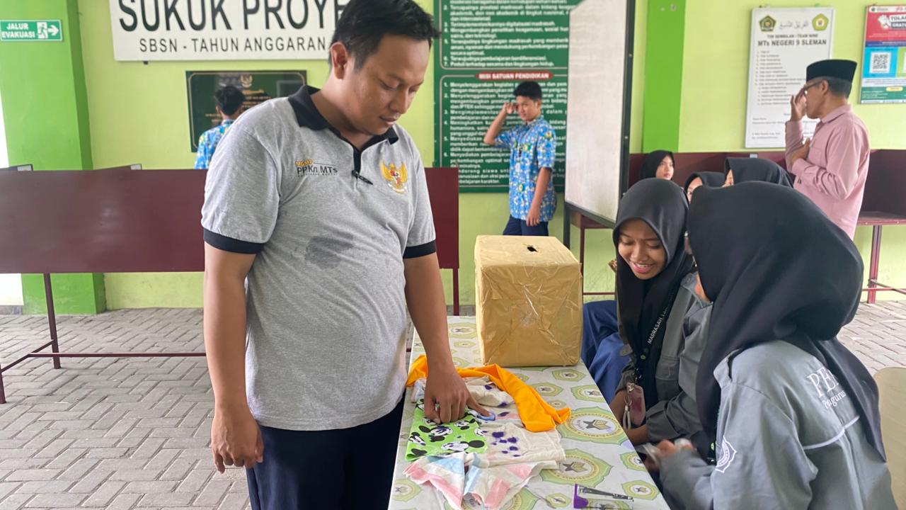 Update Matsama (MTsN 9 Sleman) – Organisasi Siswa Intra Sekolah (OSIS) MTsN 9 Sleman menggelar Jumat demokrasi MATSAMA untuk memilih Ketua dan Wakil Ketua OSIS periode 2025/ 2026 pada hari Jumat pagi (03/10/2025). Semua warga madrasah diberikan kesempatan memberikan suara sesuai pilihan mereka. Ada dua Paslon (Pasangan Calon) dalam pemilos kali ini yakni paslon pertama terdiri dari Fiina Fauzia Akmala siswa kelas VIIIC dan Qotif Aditya Romadoni siswa kelas VII C. Pasangan calon yang kedua yakni Muhammad Fawaz Anwar siswa kelas VIII B dan Ghaliban Wafiy Mahbub siswa kelas VIIC. Pesta demokrasi dimulai dari jam 08.00 WIB dan dilaksanakan di Lobi MTsN 9 Sleman.