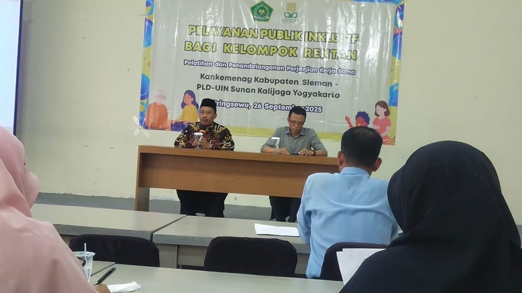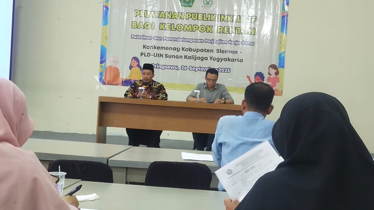 Update Matsama (MTsN 9 Sleman) – MTsN 9 Sleman turut ambil bagian dalam kegiatan Pelatihan Program Pelayanan Masyarakat Kelompok Rentan yang digelar oleh Kementerian Agama Kabupaten Sleman bekerja sama dengan UIN Sunan Kalijaga Yogyakarta. Dalam kesempatan ini, madrasah diwakili oleh Waka Humas yakni Elva Lutfiyati yang hadir pada Jumat (26/9/2025) di Restoran Taman Pringsewu, Sleman.