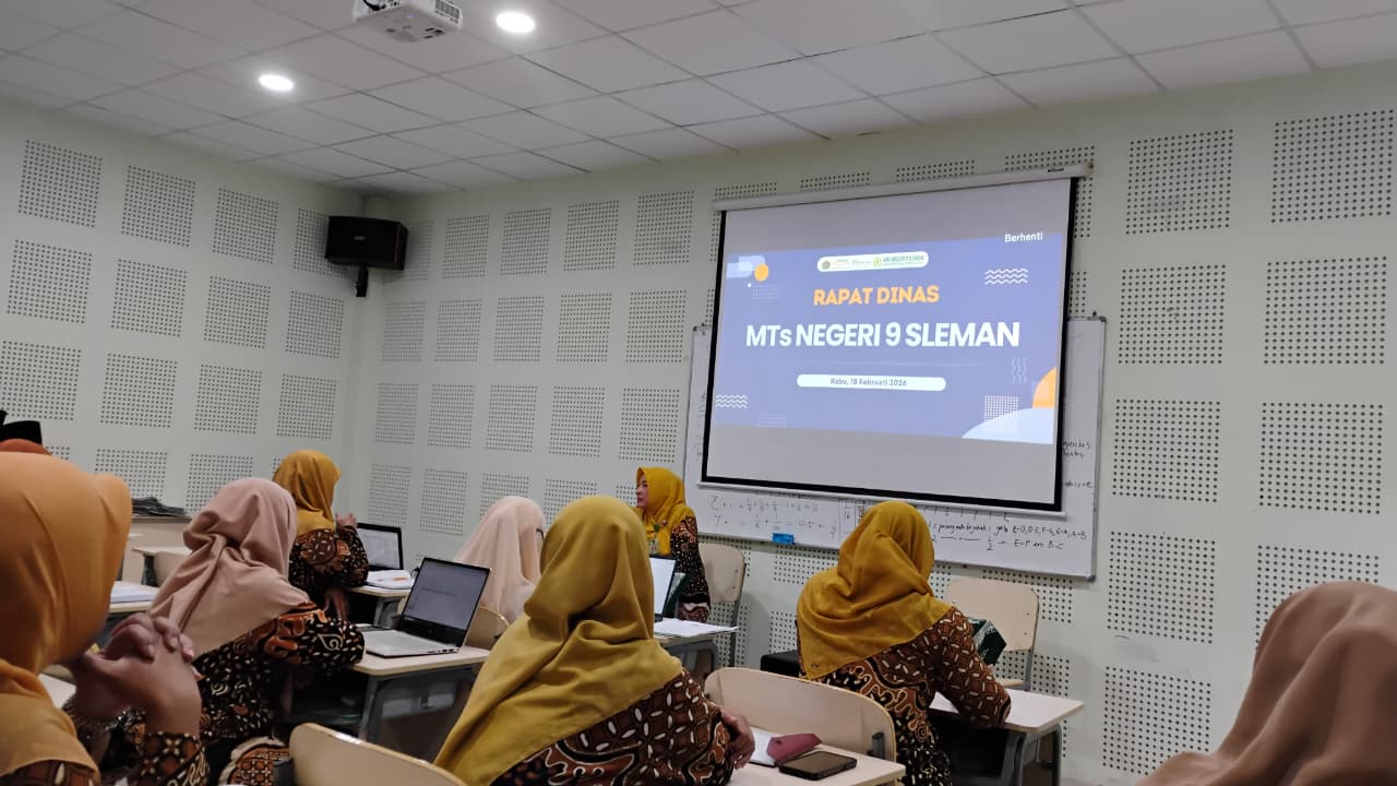 Update Matsama (MTsN 9 Sleman)- Setelah libur Tahun Baru Imlek selama dua hari, MTsN 9 Sleman mengadakan rapat dinas pada Rabu pagi (18/02/2026) pukul 08.00 WIB bertempat di ruang multimedia MTsN 9 Sleman. Kegiatan ini dihadiri oleh seluruh Bapak dan Ibu guru, pegawai, mahasiswa PLP UIN Sunan Kalijaga, Kepala Madrasah, serta Kepala Tata Usaha (Ka TU). Rapat dinas tersebut dilaksanakan sebagai bentuk koordinasi rutin untuk memperkuat sinergi dan meningkatkan kualitas kinerja seluruh unsur madrasah.