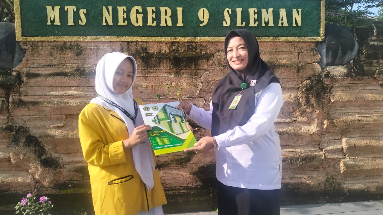 Update Matsama (MTsN 9 Sleman)- Sebagai bentuk apresiasi atas prestasi siswa, MTsN 9 Sleman menyerahkan reward dan uang pembinaan kepada Queen Agatha Shakti Aurora Amoris, siswi kelas IXC yang berhasil meraih Juara 3 lomba Cerita Islami dalam ajang MANU Competition #6 tingkat SLTP sederajat se-DIY dan Jawa Tengah. Prestasi tersebut menjadi kebanggaan tersendiri bagi madrasah karena menunjukkan kemampuan siswa dalam mengembangkan bakat literasi bernuansa keislaman.