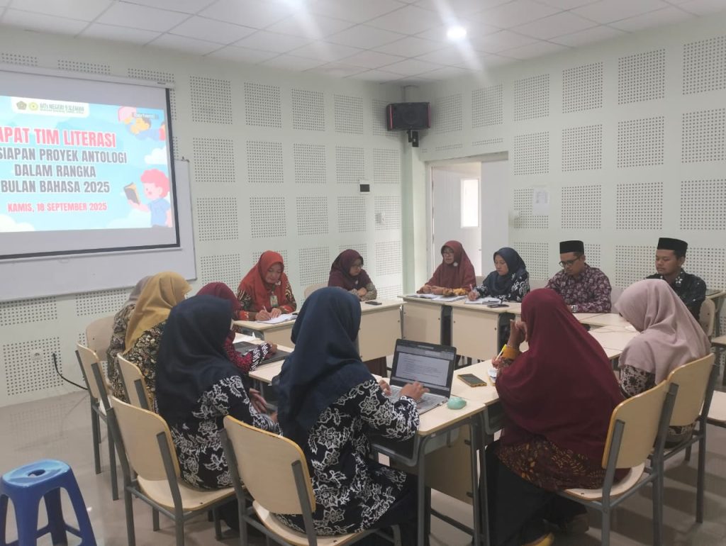 Kemenag Sleman News (MTsN 9 Sleman) – Kamis siang (18/09/2025) Tim Literasi MTsN 9 Sleman mengadakan rapat koordinasi. Koordinasi ini bertempat di ruang Multimedia dan dihadiri oleh Kepala madrasah dan Bapak/Ibu guru anggota Tim Literasi yang berjumlah lima belas orang. Sosialisasi ini diawali dengan sambutan oleh Siti Juwariyah selaku Kepala MTsN 9 Sleman dan dipandu oleh Ketua Tim Literasi yakni Dwi Ari Wahyuni.