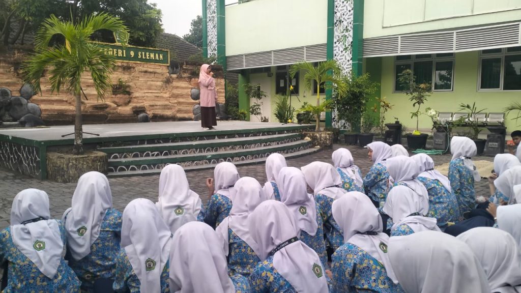 Sleman (MTsN 9 Sleman) – MTsN 9 Sleman menyelenggarakan kegiatan orasi calon ketua dan wakil ketua OSIS masa bakti 2025/2026 pada Jumat (3/10/2025). Acara ini berlangsung mulai pukul 07.00 hingga 07.30 WIB di panggung dan halaman madrasah dengan diikuti oleh seluruh siswa kelas VII, VIII, dan IX. Dalam kesempatan tersebut, Eni Rinawati selaku Wakil Kepala bidang Kesiswaan MTsN 9 Sleman menyampaikan sambutan dan pesan penting kepada para siswa.
