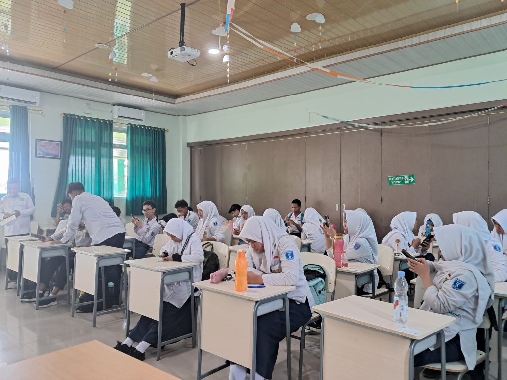 Dalam kegiatan tersebut, siswa memanfaatkan gawai dan aplikasi desain grafis sederhana untuk membuat poster yang memuat pesan positif mengenai peran guru di era masyarakat cerdas (smart society). Para siswa diajak untuk menuangkan ide kreatif mereka melalui desain visual yang komunikatif, memadukan teks, warna, dan ilustrasi secara tepat.