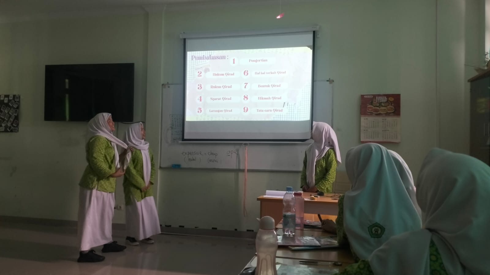 Presentasi berlangsung menarik, karena siswa tidak hanya menampilkan materi, tetapi juga mencoba memberikan contoh-contoh aplikatif dalam kehidupan sehari-hari. Hal ini membuat suasana kelas menjadi lebih hidup, interaktif, dan mudah dipahami. Melalui kegiatan ini, siswa diharapkan semakin memahami konsep Fikih secara mendalam, serta terbiasa menggunakan teknologi sebagai sarana pendukung pembelajaran yang kreatif dan menyenangkan.