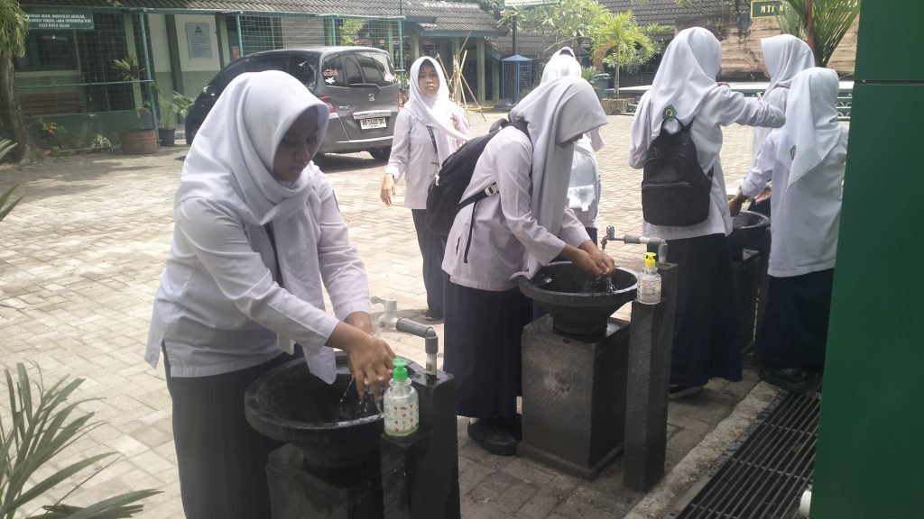 Guna memastikan kegiatan berjalan efektif, Triyantoro Adhi selaku koordinator tim kokurikuler kelas VIII menugaskan beberapa guru sebagai fasilitator di masing-masing kelas. Para fasilitator memberikan penjelasan langkah-langkah mencuci tangan yang benar, mulai dari membasahi tangan, menggosok telapak dan punggung tangan, membersihkan sela-sela jari, hingga membilas dan mengeringkan dengan benar.
