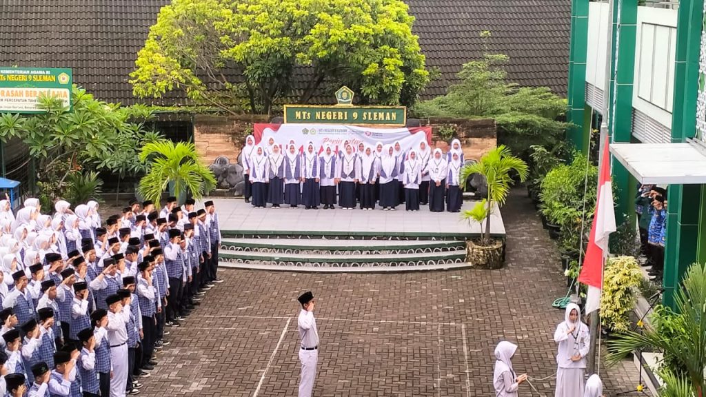 Pelaksanaan upacara berlangsung tertib dan lancar. Pasukan pengibar bendera dari siswa MTsN 9 Sleman menjalankan tugasnya dengan sigap dan disiplin, diiringi lantunan lagu kebangsaan yang menggema di seluruh halaman madrasah. Petugas upacara lainnya juga menjalankan perannya dengan baik, menunjukkan hasil latihan dan kerja sama yang solid.